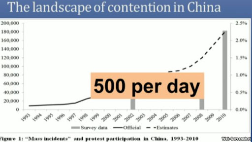 吳逢時是新加坡南洋理工大學拉惹勒南國際研究員副教授,3月23日,她在華盛頓威爾遜國際學者中心對媒體說:「是的,中國有抗議活動。上次我們得到官方數字是一年七萬五千起,但是學術界估計一年有十八萬起,幾乎每天500起。不過,其中只有10-12%的抗議活動規模可能會發展到百人以上。」