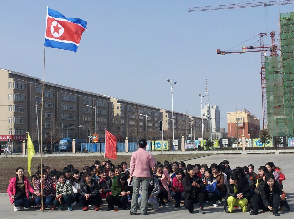 當地時間2017年2月10日,遼寧丹東,朝鮮女服務員參加運動會。(圖片來源:東方IC)