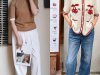 利用淺色系的米色、淺紫色、綠色、以及粉色這種馬卡龍色系的針織來搭配長褲,可以體現出金秋清透、甜美以及少女感,在此基礎上加入富有文藝感的配飾可以讓造型更有亮點。