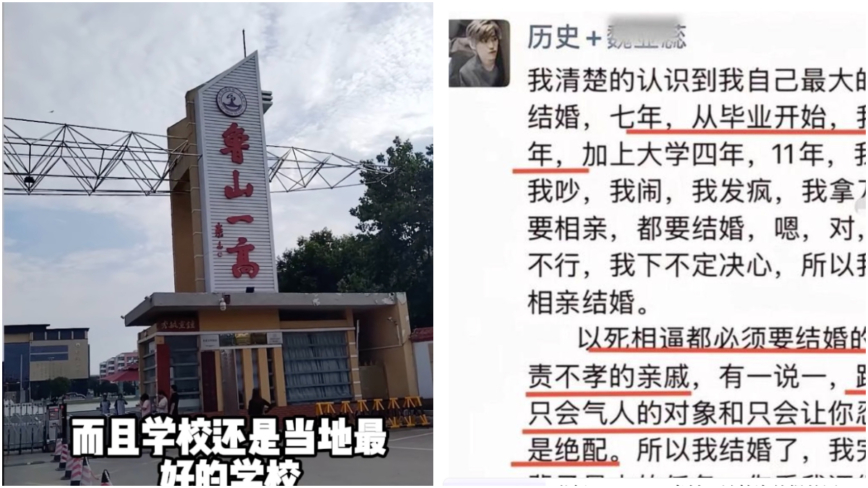 12月12日,有網友發帖稱,河南魯山一高中女教師從7樓墜樓身亡。網傳信息顯示,她疑似在家人催婚壓力下,於結婚當日選擇輕生。