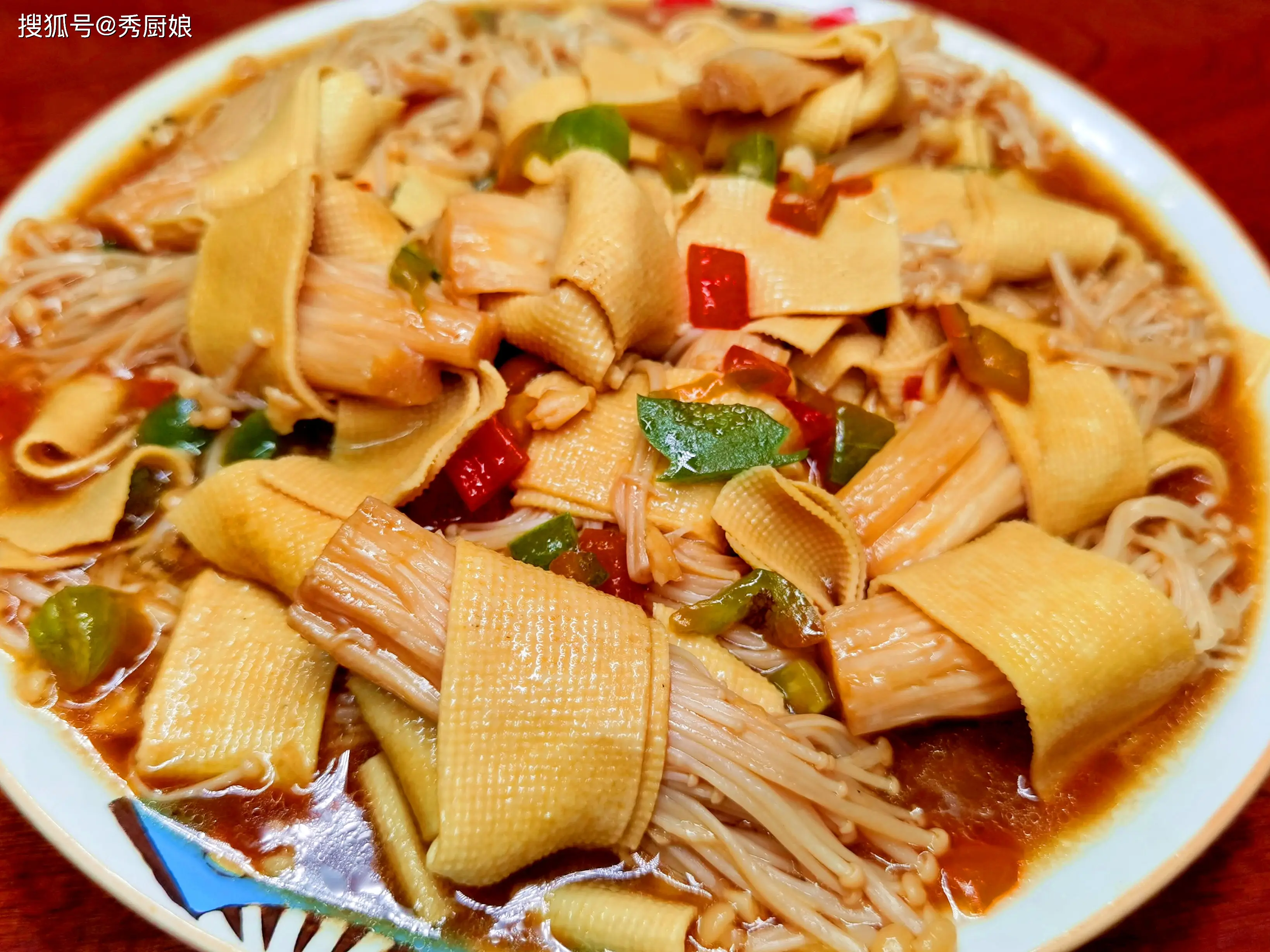 豆皮裹着金針菇,打結燉煮,豆皮軟嫩,金針菇脆爽,醬汁濃郁,一口一個特別滿足。