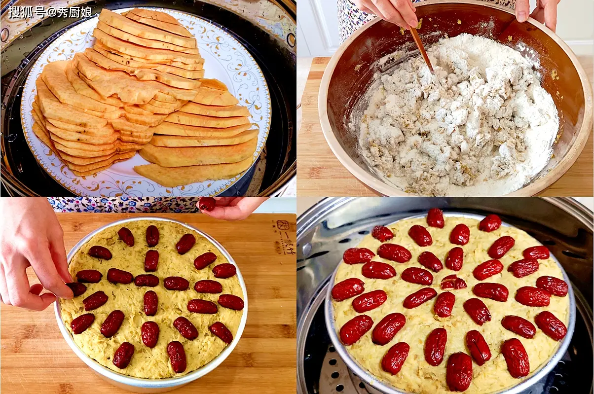 不用揉面,發酵後蒸出來鬆軟香甜,紅薯自然的甜味加上紅棗香,當早餐或點心都很合適。