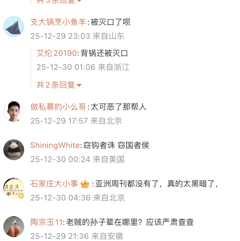 微博信息顯示,一致跟蹤報導此事件的香港媒體《亞洲周刊》在12月28日全部刪除報導報導內容後,12月30日,微博賬號已經消失不見。