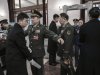 2025年3月5日,中共人大會議開幕前,軍隊代表抵達北京天安門廣場旁的人民大會堂外。