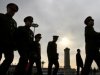 2012年5月3日,北京天安門廣場,中共武警在遊客觀看傳統的降旗儀式時保持警戒。
