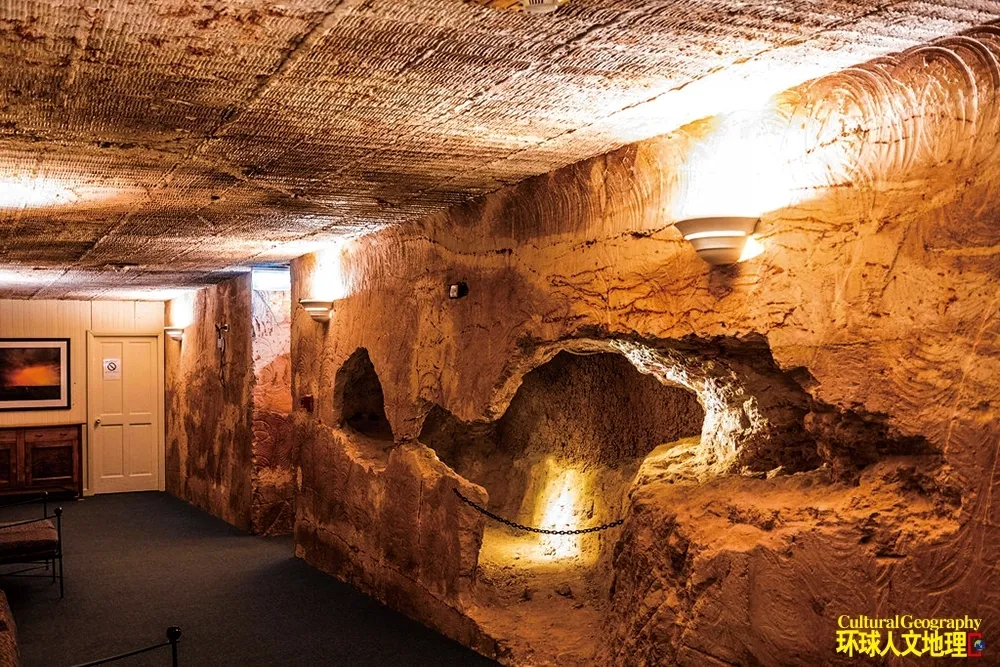 第一次世界大戰後,一批從歐洲戰場歸來的士兵輾轉來到此處謀生,他們將挖掘戰壕的豐富經驗應用於這片沙漠。隨後湧入的礦工們,也利用他們最熟悉的工具,在山坡穩定的砂岩層中開鑿出最初的棲身之所——這就是如今被人們稱為「防空洞」地下建築的雛形。這些地下住所的溫度常年穩定在19~25℃之間,無需空調便能有效隔絕地表的冰火兩重天,為居民提供了一個近乎完美的恆溫避難所。