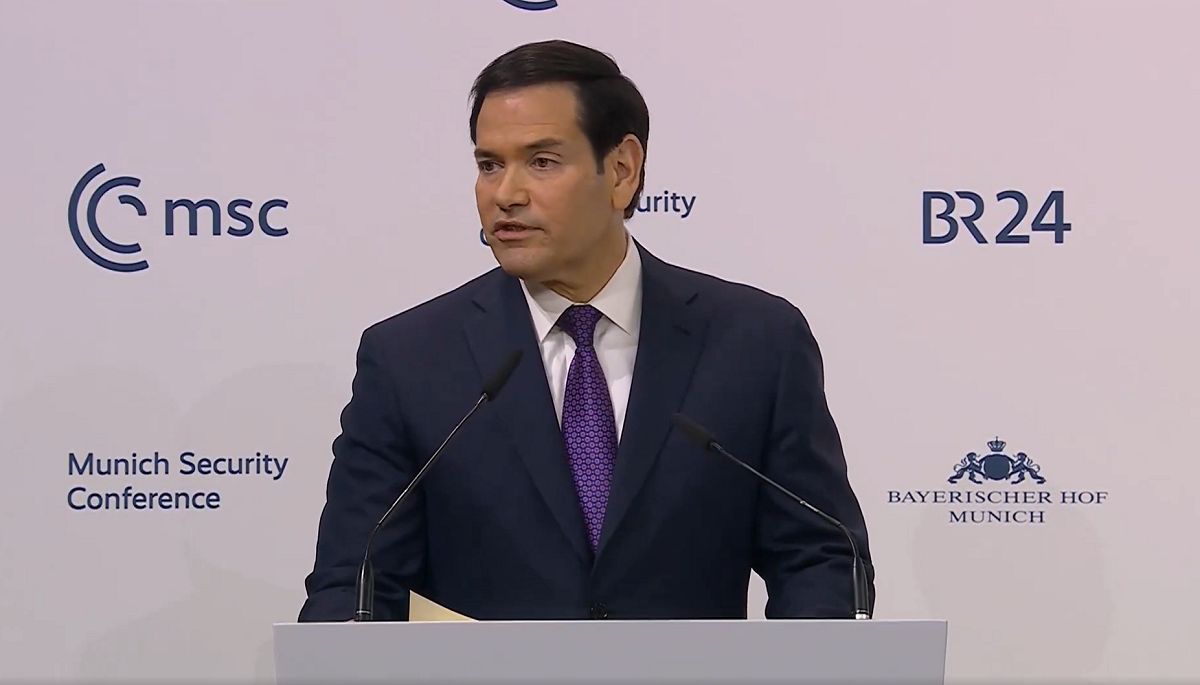 美國國務卿盧比歐(Marco Rubio)14日在德國「慕尼黑安全會議」發表演說。圖:翻攝自@SecRubioX