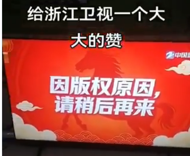 阿波羅網王和報導/2026年過年剛過,一段只有16秒的電視畫面,意外成為海外中文網絡最熱的討論焦點之一。幾天內,又一個省級衛視成為海外華人熱議的熱點——有人說浙江衛視「拒絕播出央視政治春晚,寧願留空白也不播」。一段視頻在X(前Twitter)和YouTube瘋傳,視頻里,浙江衛視屏幕長時間顯示「因為版權原因,請稍後回來」,沒有主持人出鏡,也沒有節目畫面或額外說明,只是文字循環顯示。