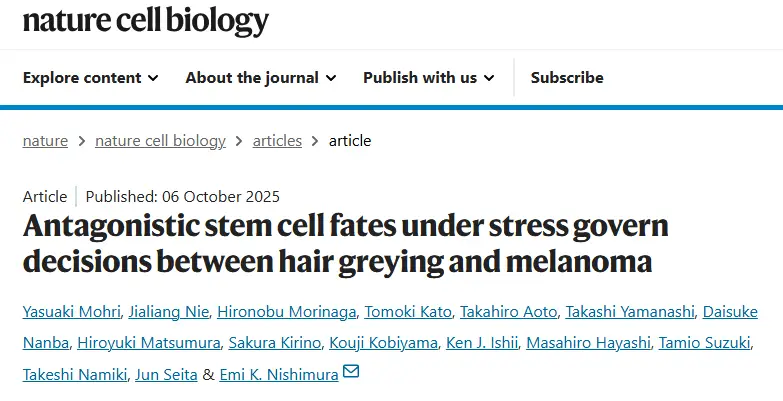 但黑色素幹細胞出現DNA損傷時,在面臨衰老和致癌兩條路徑下,幹細胞自動觸發保護性程序,不斷耗竭自身加速消失,而少了色素來源,頭髮就會開始發白。也就是說,身體為了清除有可能癌化的受損色素幹細胞,最終犧牲了頭髮顏色。