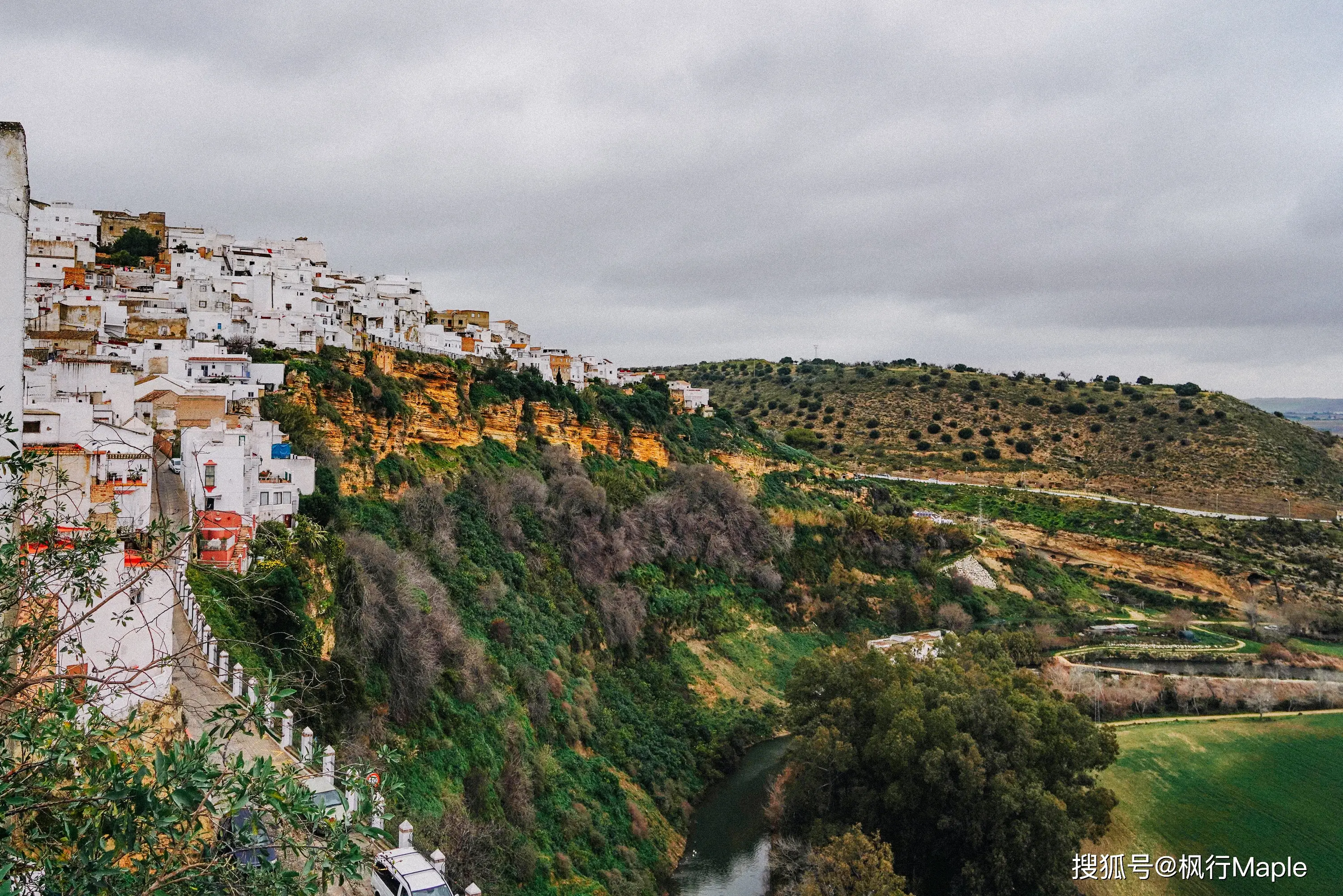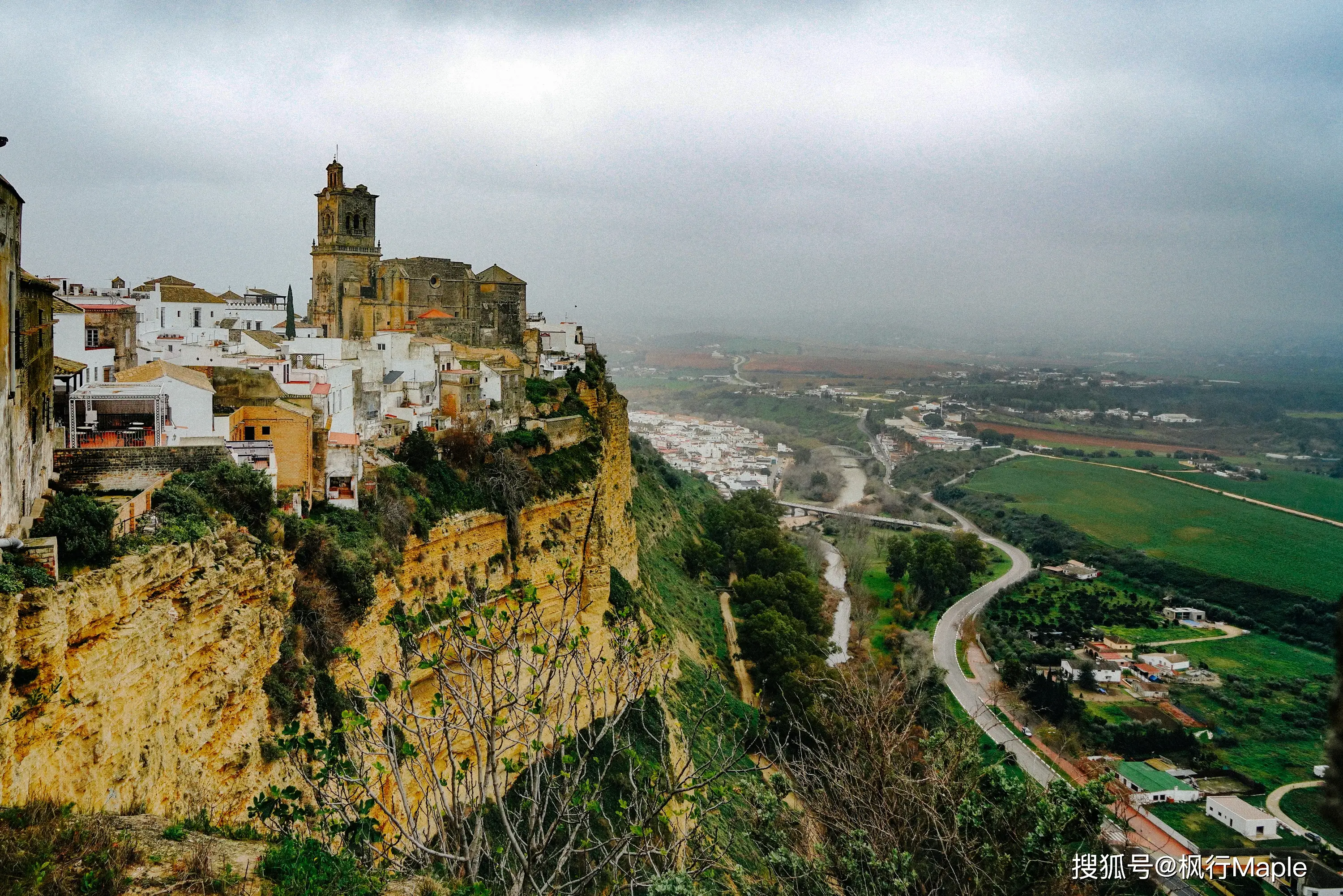懸崖下方是一望無垠的田野,瓜達盧佩江在田野上靜靜地流淌。
