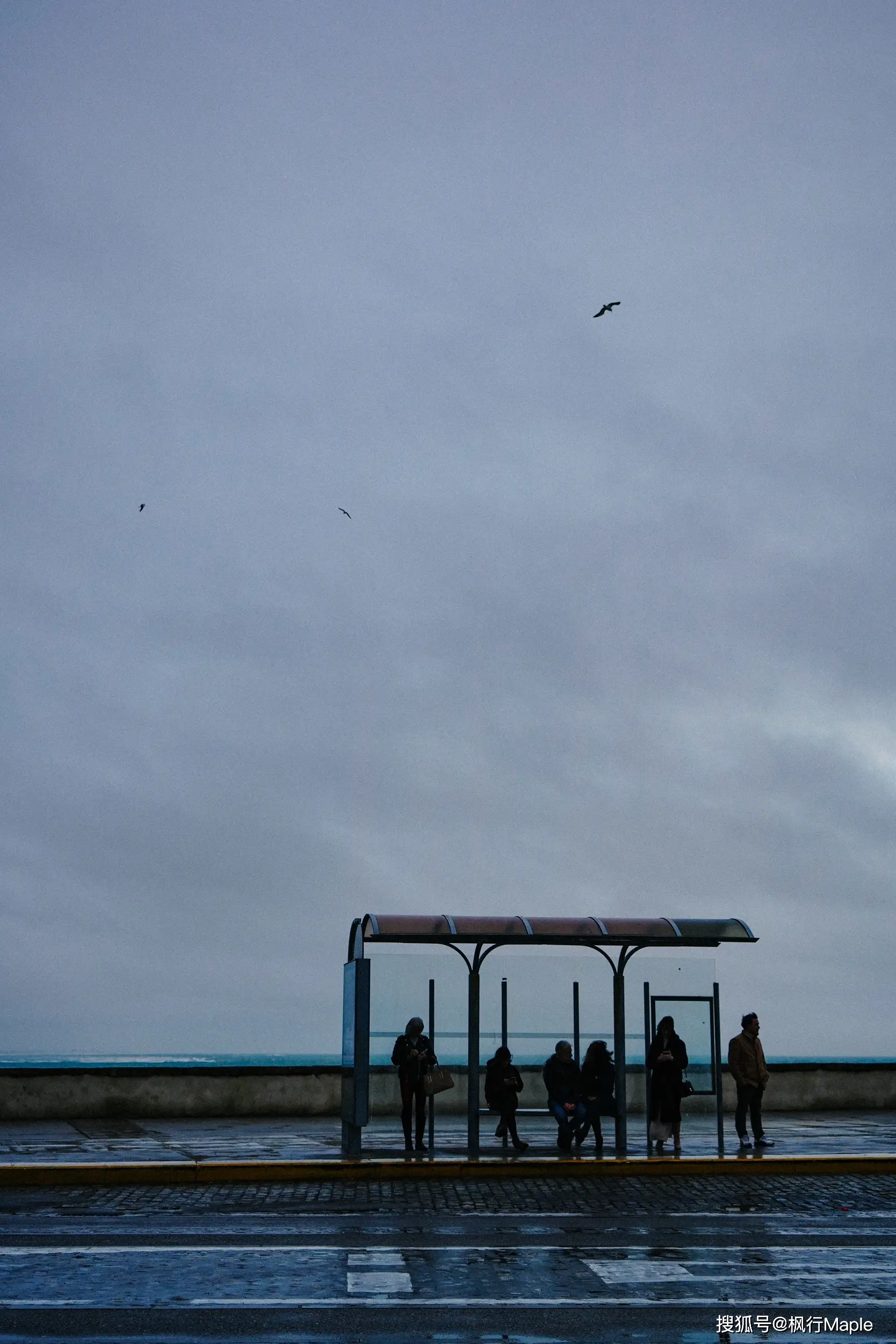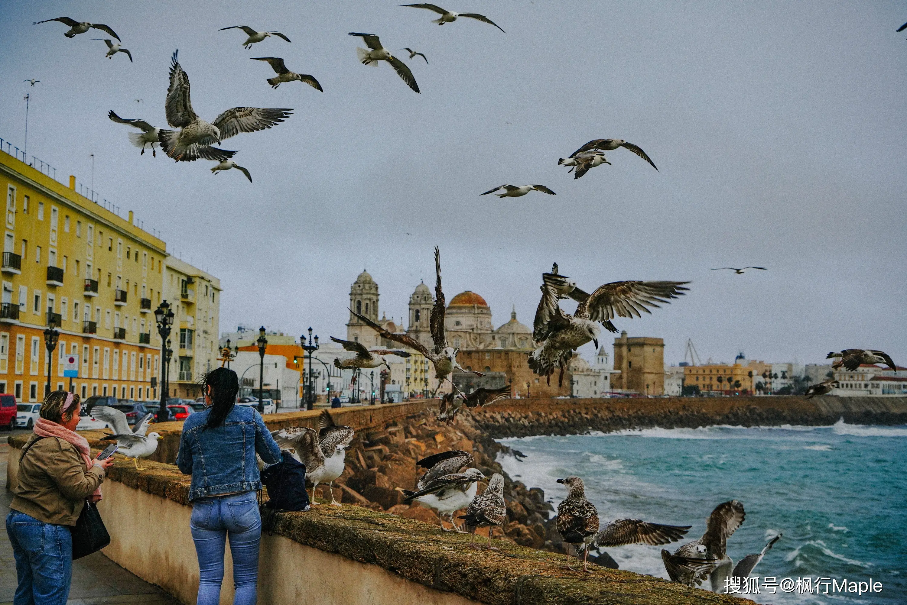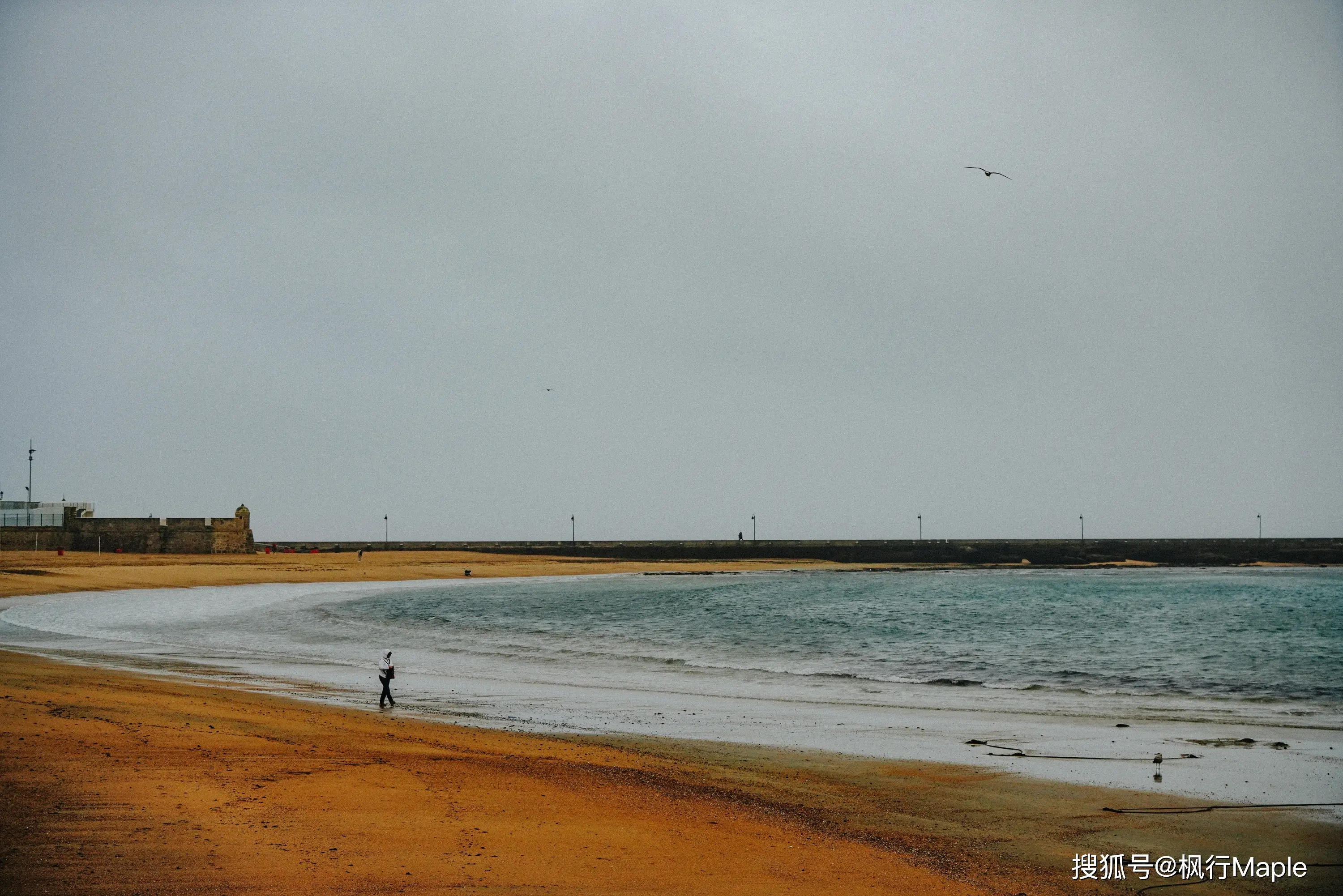 沿着海岸向大教堂走,海鷗逆着風低旋在天空中。