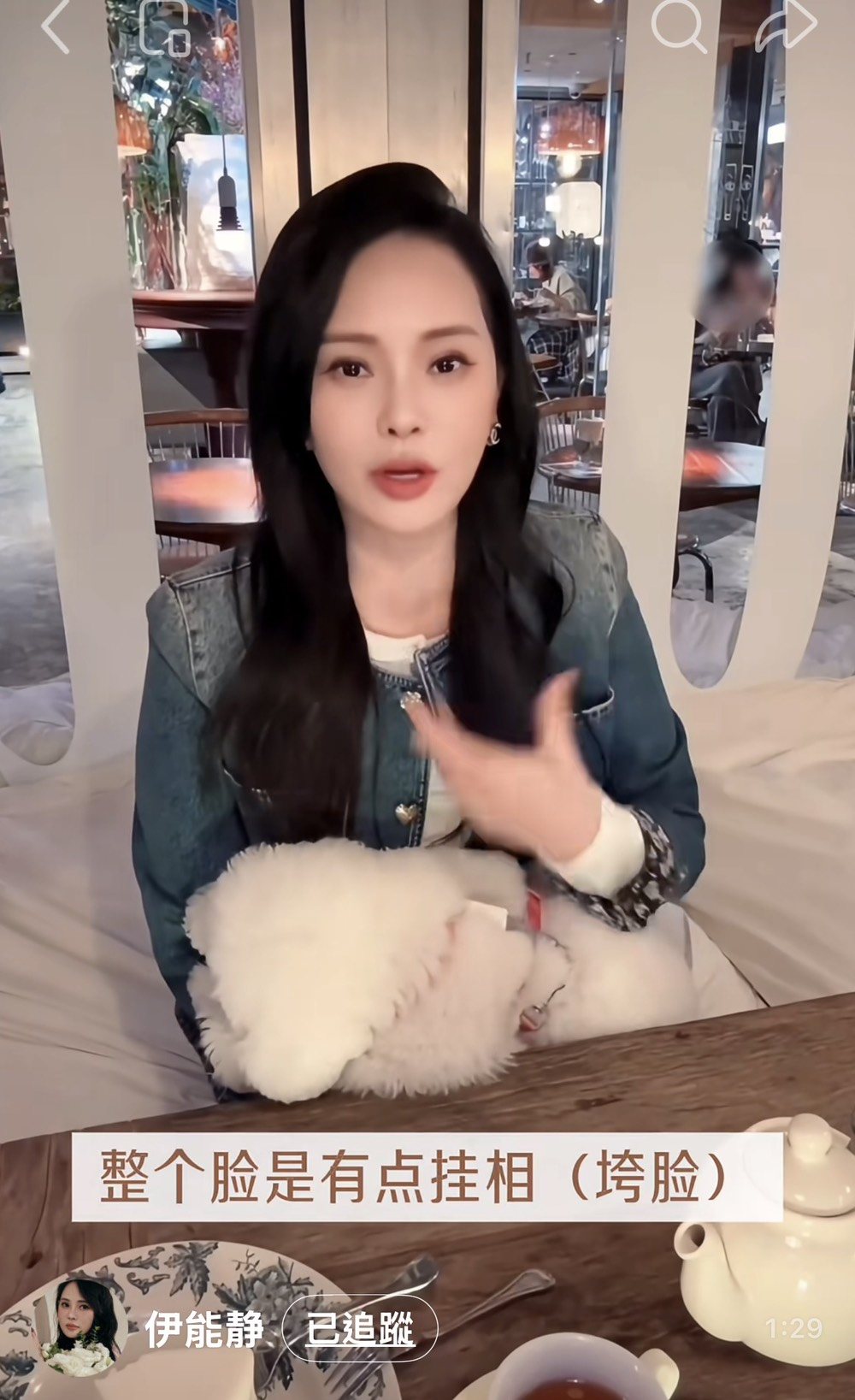伊能靜抱着愛犬Miu miu,透露為了不讓它淚腺明顯,刻意避開鹹的食物,而她也很會照顧自己,近年採取低糖飲食,不再像過去追求極端減肥法。