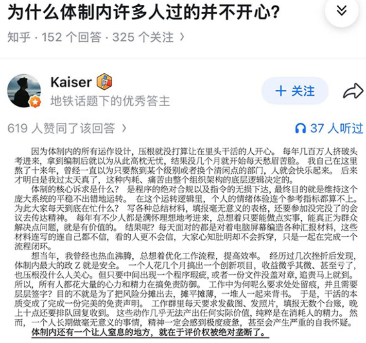 jaimesolis:體制內的朋友跟我說過,最難的不是工作本身,而是每天對着自己都不信的東西。
