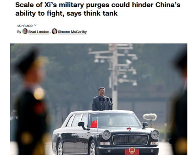 dajiyuan:中共軍方高官落馬消息頻傳,軍隊內部已出現史無前例的領導真空。2月24日,美國智庫戰略與國際研究中心(CSIS)發佈報告指出,「中共軍方內部的清洗比你想像的還要深入」。已有101個將領被清洗:由於出現巨大的職位空缺,在52個關鍵軍職中,目前僅有約11個職位被正式補齊,中共要在短期內發起對台大型軍事行動,難度將顯著增加。