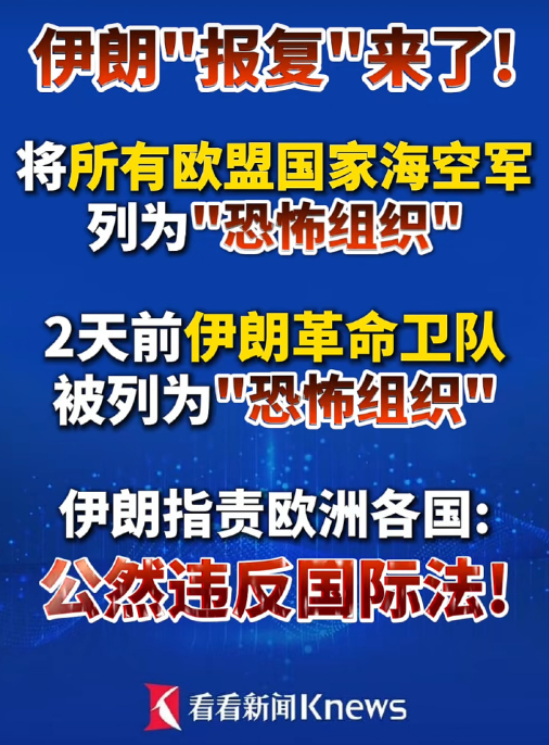 【找死的節奏】伊朗將所有歐盟國家海空軍列為「恐怖組織」。這堪比慈禧發佈《宣戰詔書》,向11個國家宣戰。