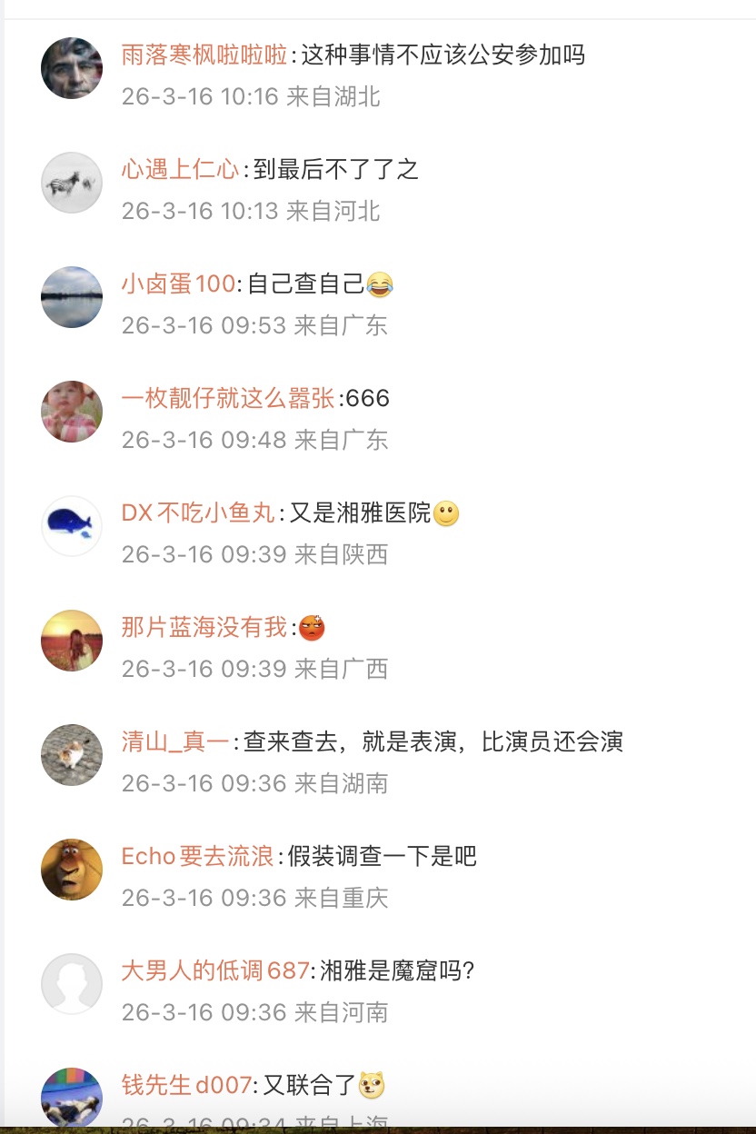 3月16日,湖南衛健委通報稱,「中南大學和湖南省衛生健康委已成立聯合調查組」開展調查,但通報受到了普遍質疑。