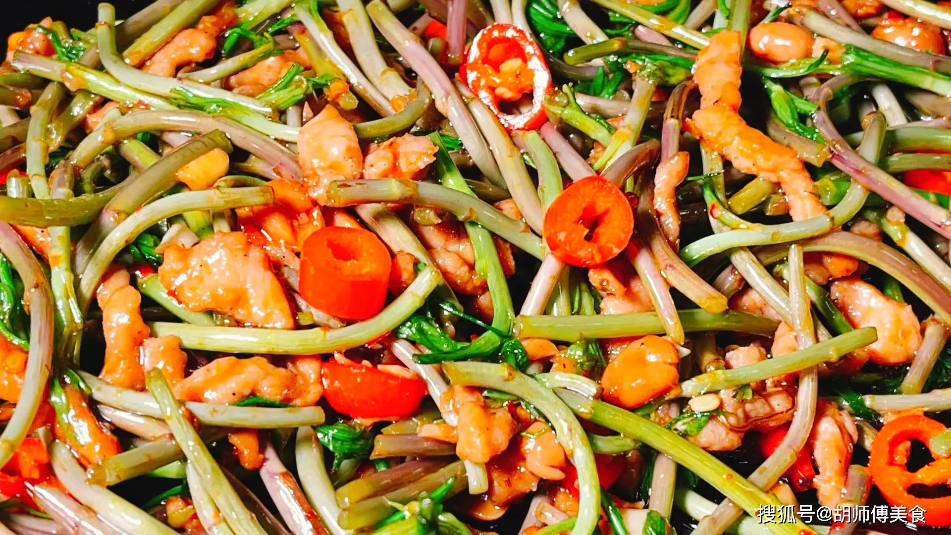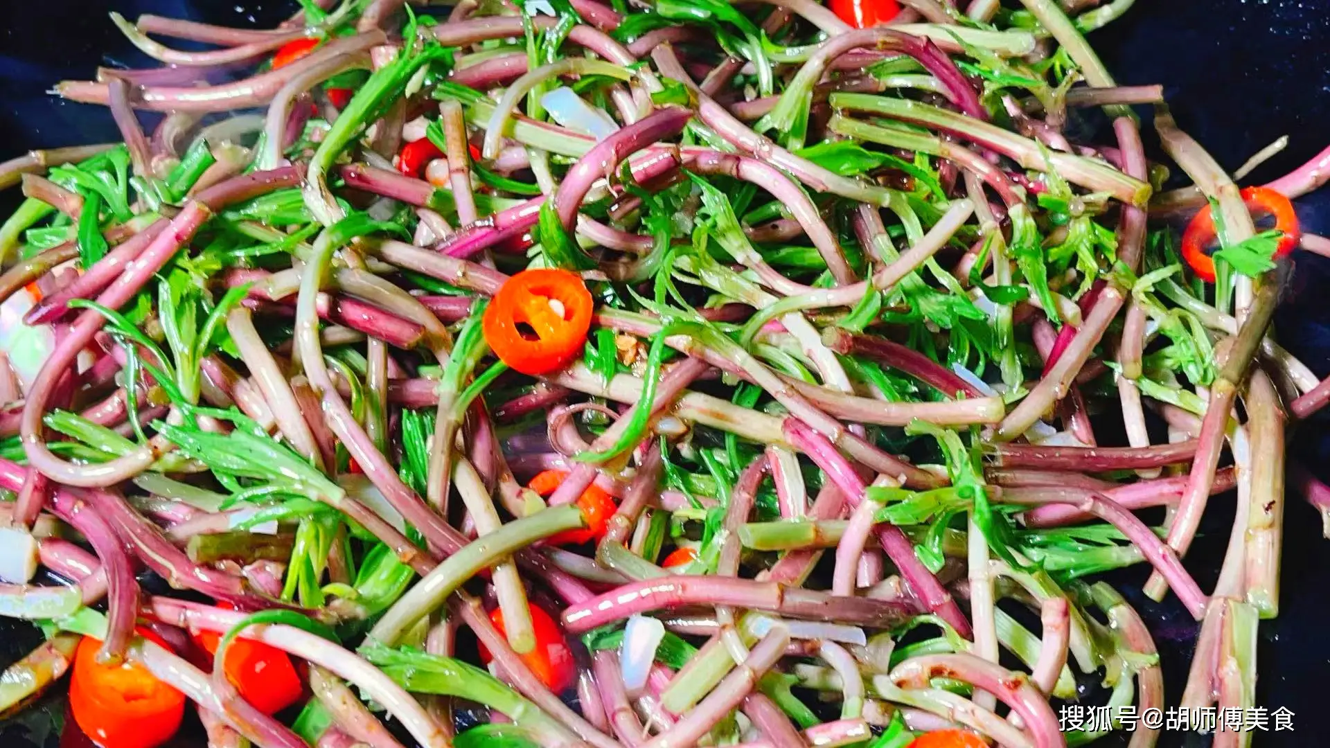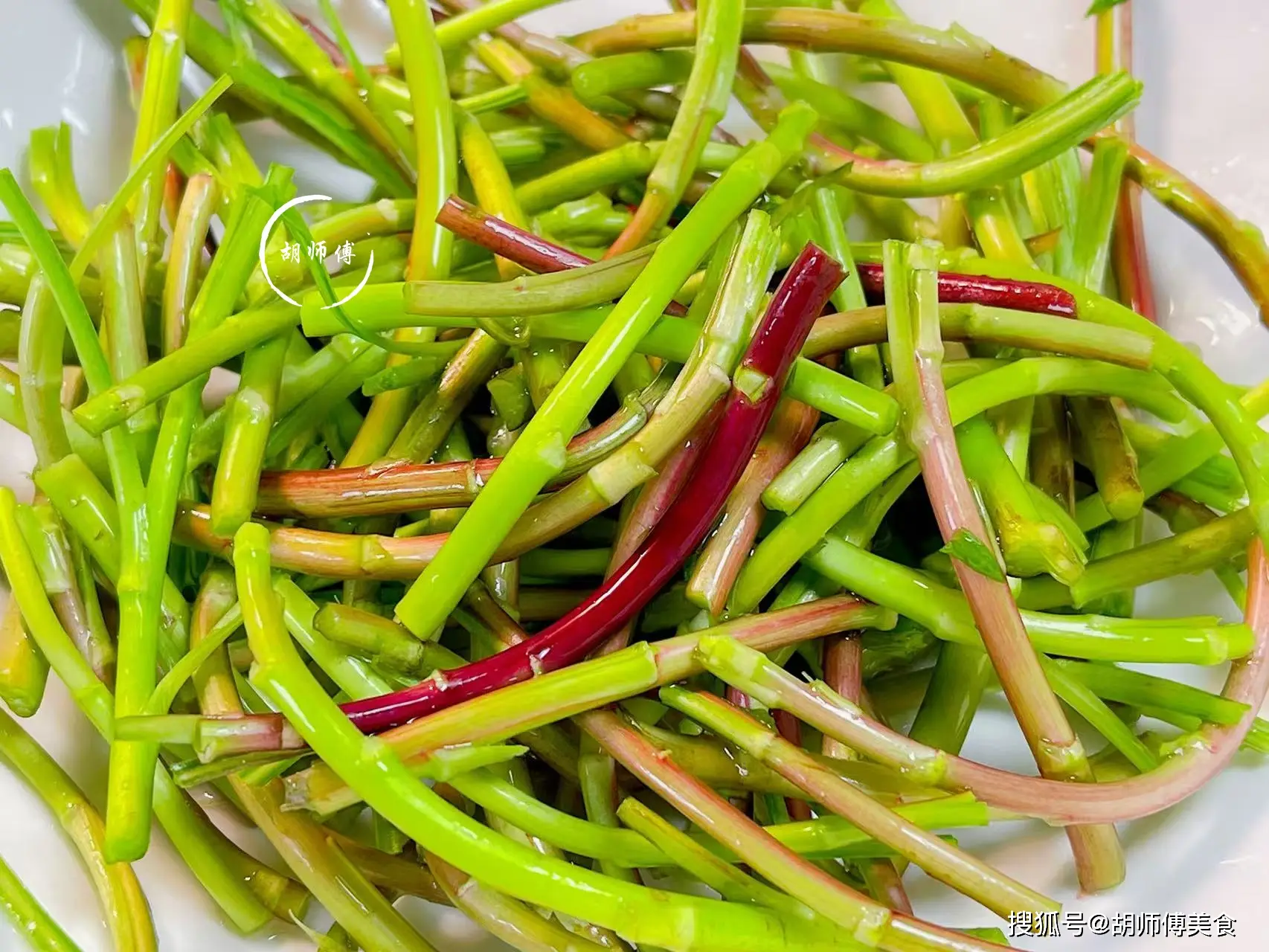 【食材準備】:野黎蒿300克、瘦肉100克、小米椒、蒜末、薑末、生抽、胡椒粉、澱粉、食用油適量。