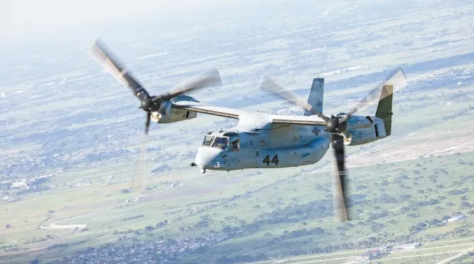 旋翼轉向水平時,魚鷹傾轉旋翼機可以高速飛行。圖:翻攝自環球網