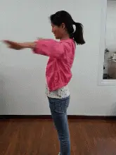 後拉時深吸氣,回收時呼氣,動作在水平面緩慢進行,動作到位,使背後有酸脹、出汗的感覺。