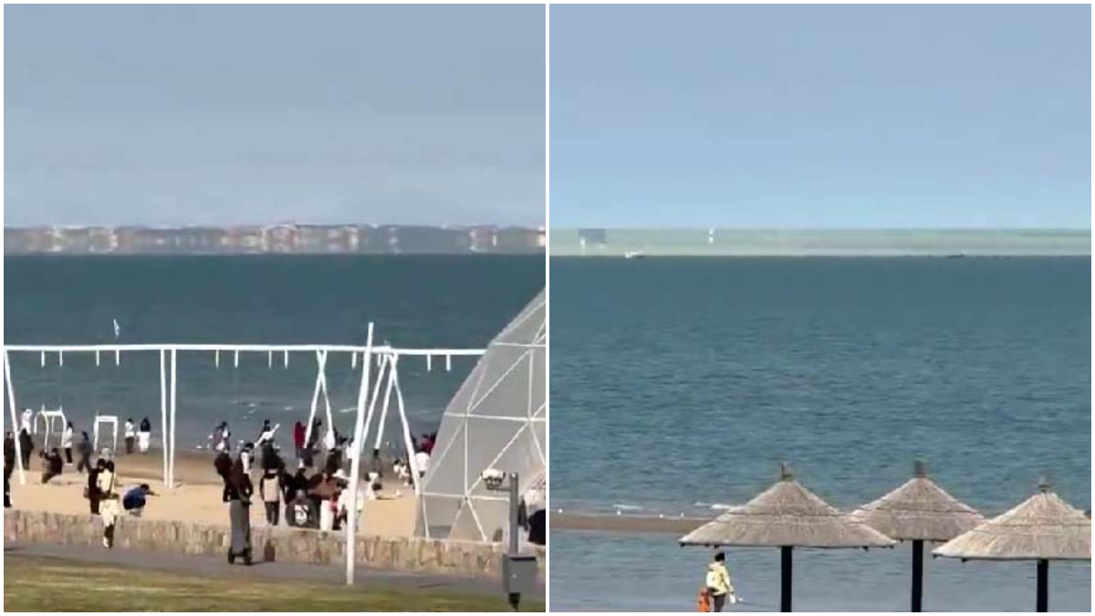 2026年3月26日,秦皇島海面上拍到海市蜃樓。(網絡視頻截圖)