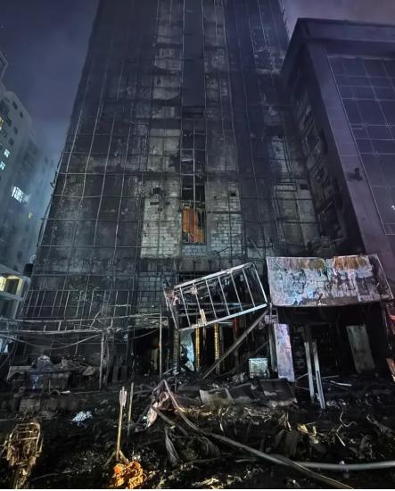 有網友質疑,說外牆着火,怎麼會燒得這麼快,保溫層是不是不夠阻燃,建議查一下大樓材料。