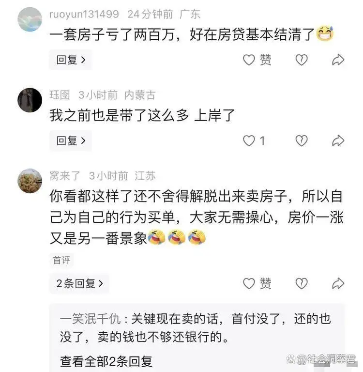 針對此事,有網友這樣評論道,你看都這樣了還不捨得解脫出來賣房子,所以自己為自己的行為買單,大家無需操心,房價一漲又是另一番景象。