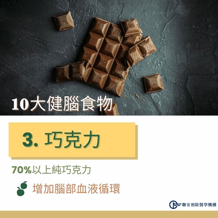 3.巧克力:70%以上的純巧克力可增加腦部的血液循環,提升腦力!