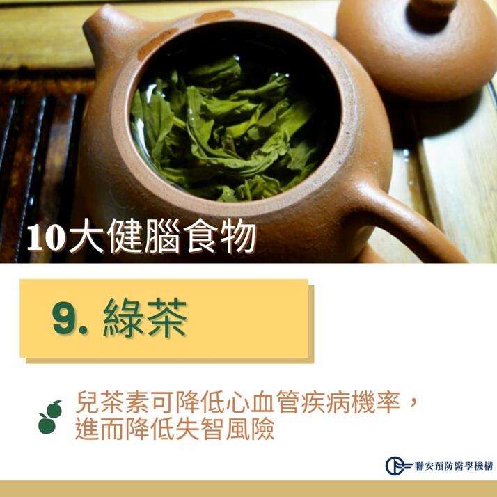 9.綠茶:內含兒茶素可降低心血管疾病的幾率,進而降低失智風險。