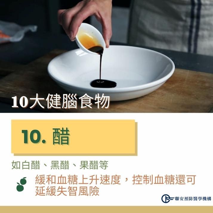 10.醋:可控制血糖,緩和血糖上升的速度;也能延緩失智風險。