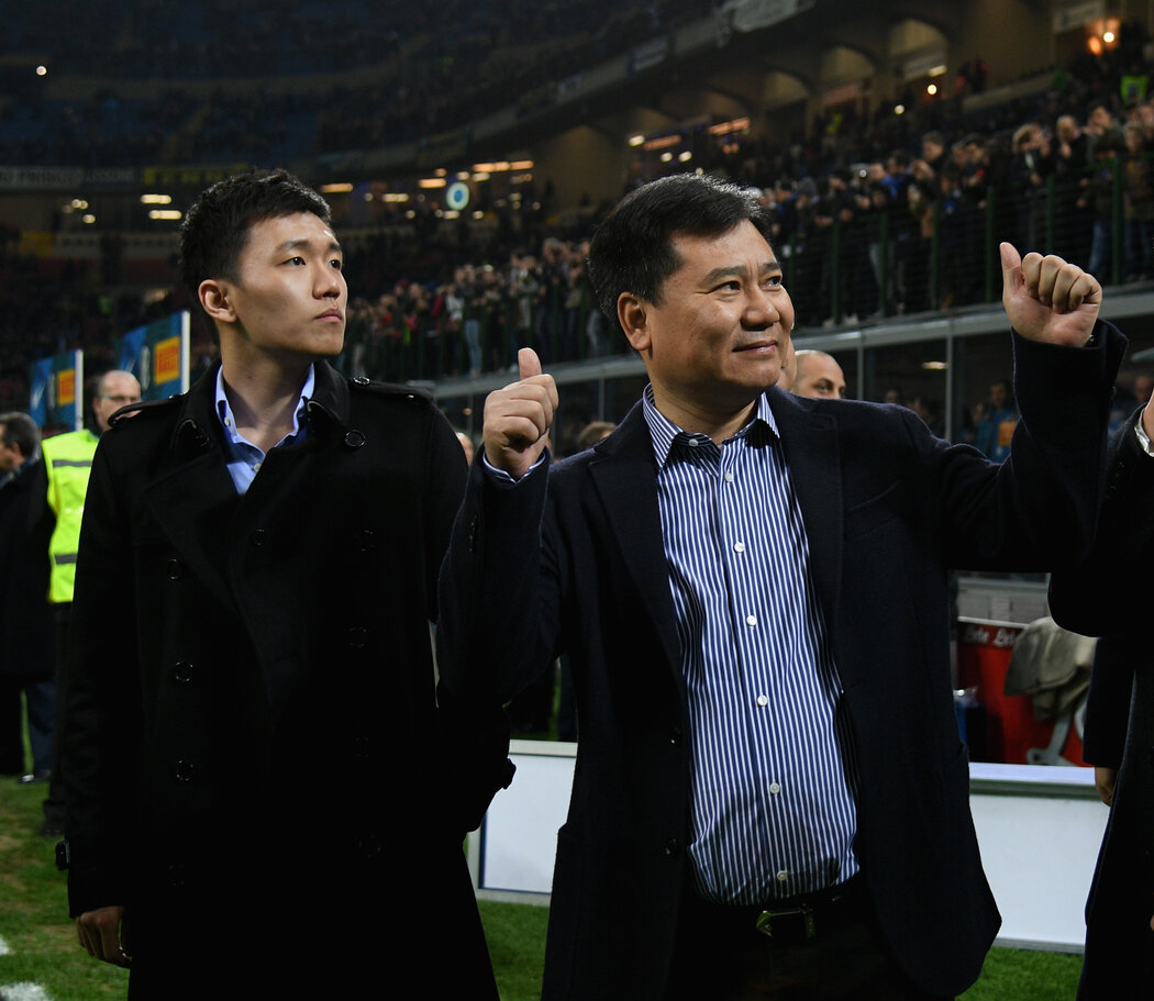 資料照片蘇寧董事長兼創始人張近東(右)和兒子張康陽(Claudio Villa- Inter/FC Internazionale via Getty Images)