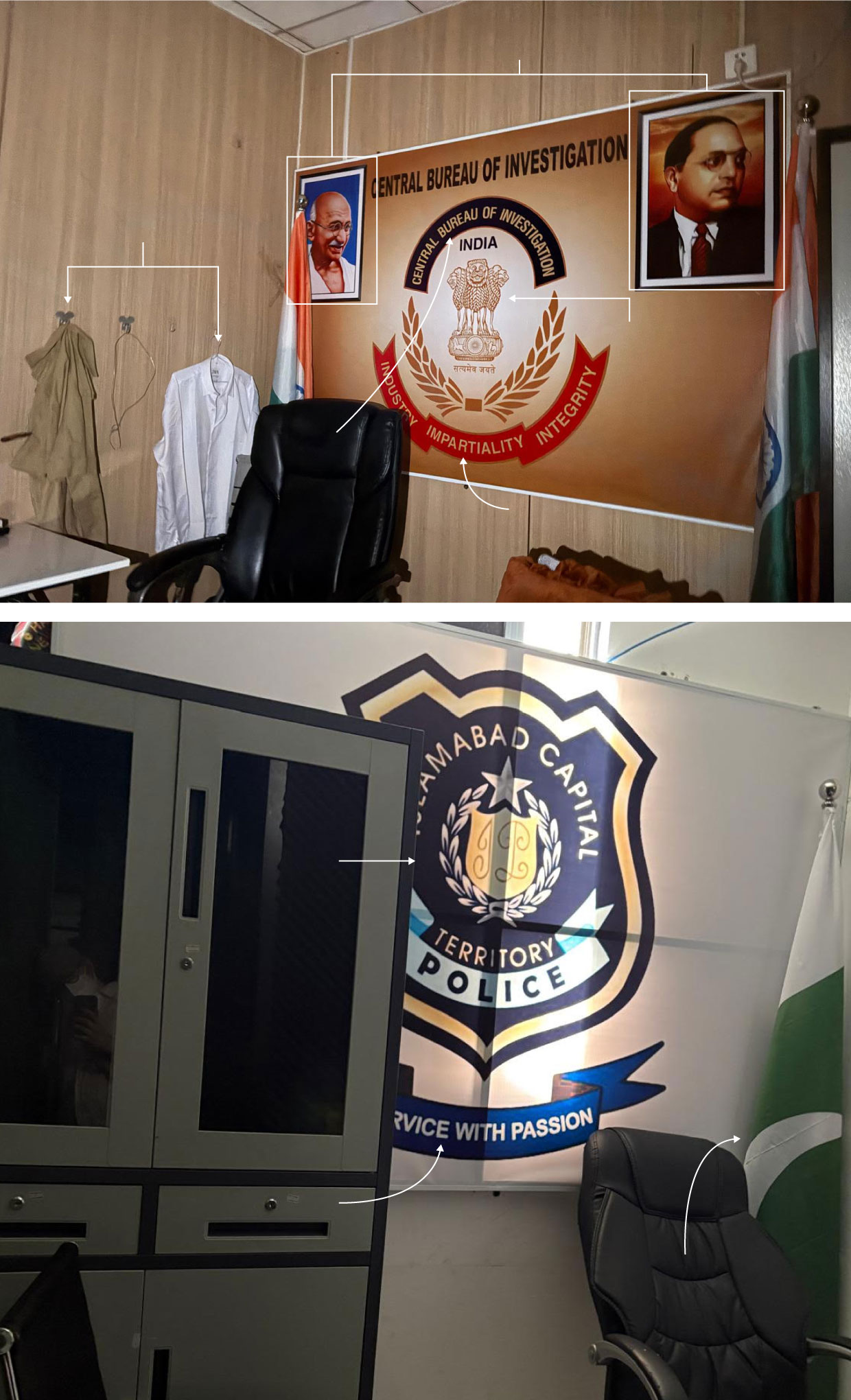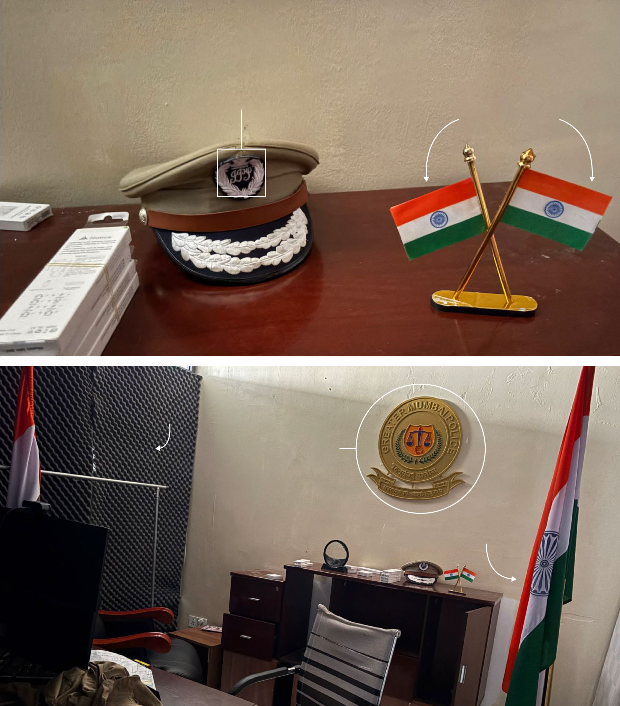 在柬埔寨,當局近期帶領記者參觀了一個廢棄的詐騙中心,展示了猶如電影製片廠般的印度警局佈景。在其中一個房間,大孟買警察局(Greater Mumbai Police)的徽章高懸於辦公桌後,側旁豎着印度國旗。一頂警帽放在柜子上,一套皺巴巴的制服扔在電腦旁。