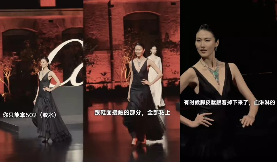 35歲的王詩晴作為90後超模代表人物之一,常年出現在四大時裝周的T台上,風光背後卻滿是心酸。她自曝在米蘭走秀時,因腳太小鞋子太大掉了一次,被品牌方要求用502膠水把鞋子粘在腳上,下台脫鞋時連腳皮都撕下來了血淋淋的,「所以模特的腳都不太能看。」