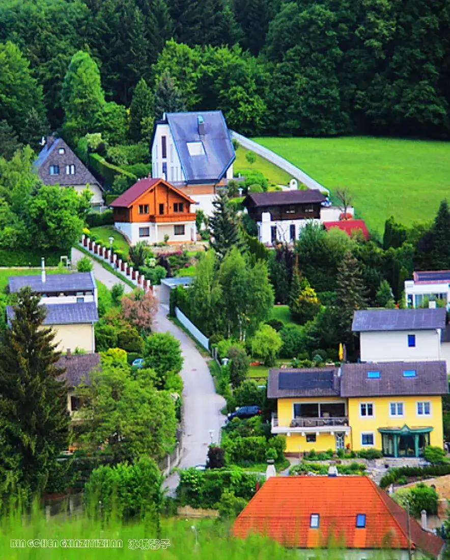 前一日聽導遊說要入住森林小鎮,我只當是普通的村落,不曾想,這片距離維也納二十多公里的地方,竟是如此動人的秘境。山間綠意蔥蘢,精緻可愛的小屋散落其間,難怪昨夜的夢,都格外香甜。