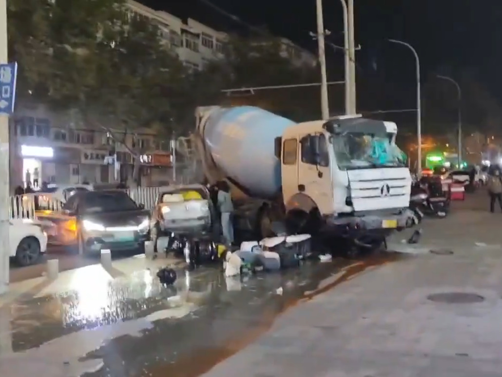與本案無關。圖為2024年10月23日晚,山東青島人民路附近一輛水泥罐車行司機一邊高喊「共產黨不讓我活了,我要殺人」,一邊駕車連續衝撞了50多輛車。(視頻截圖)