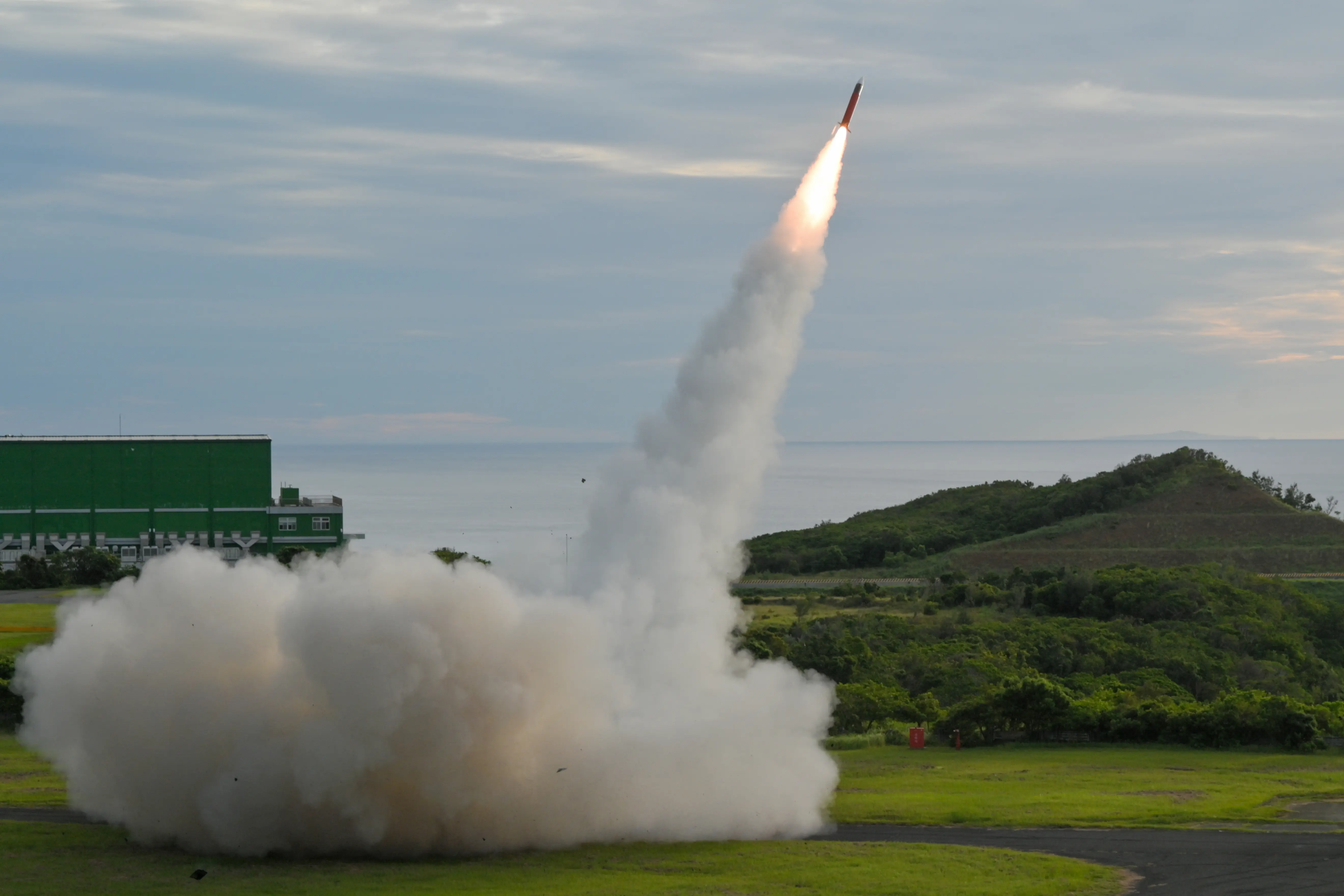 2024年8月20日,一枚美國製造的MIM-104愛國者地對空導彈在台灣屏東縣九鵬導彈基地的實彈演習中發射