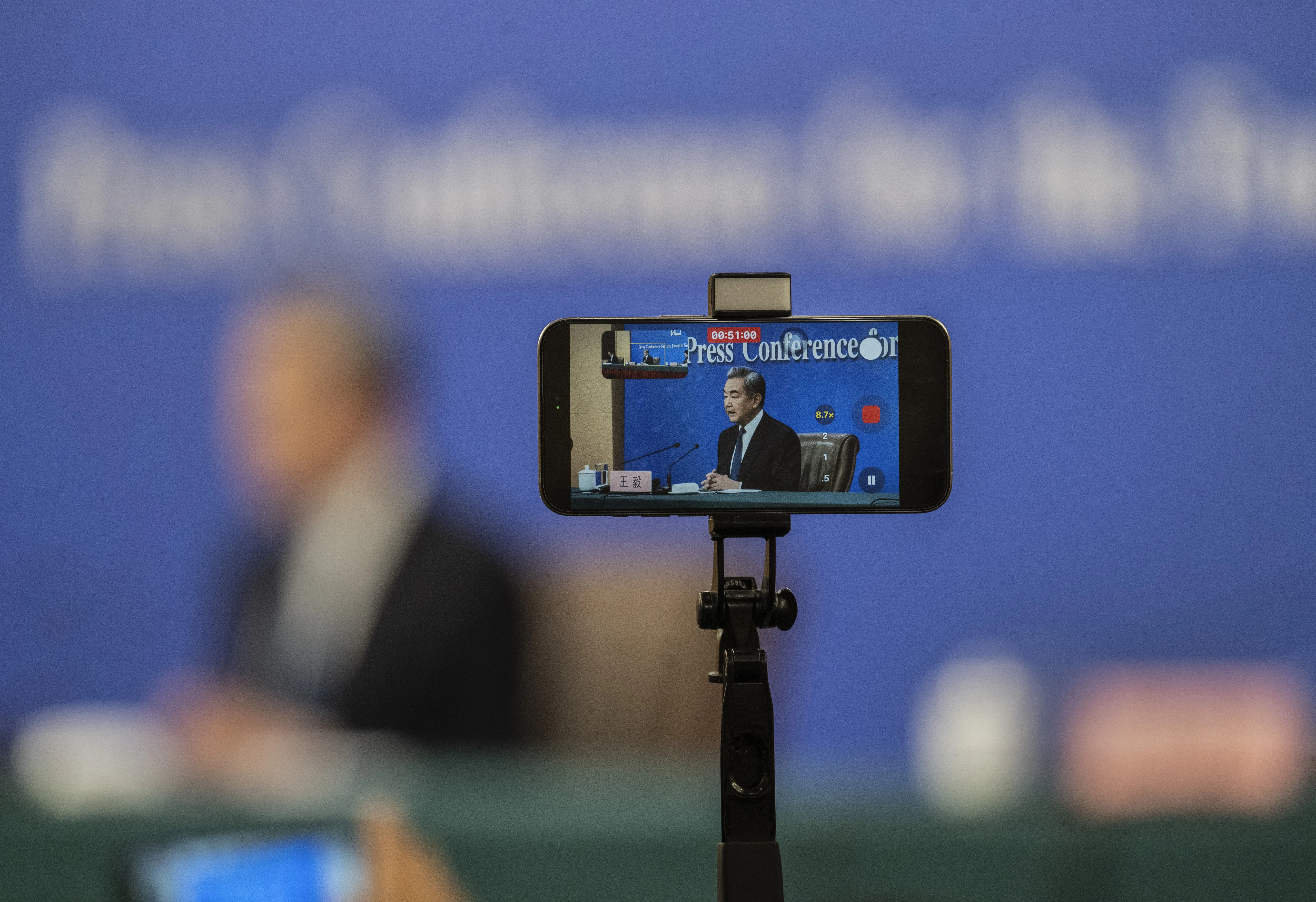 2026年3月8日,中共外長王毅在兩會期間的記者會上。(Kevin Frayer/Getty Images)