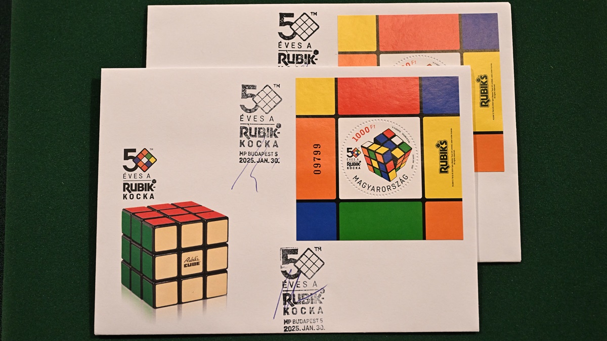 匈牙利郵政(Magyar Posta)為紀念魔方專利50周年而發行的新郵票,該郵票於2025年1月30日在匈牙利布達佩斯發行。