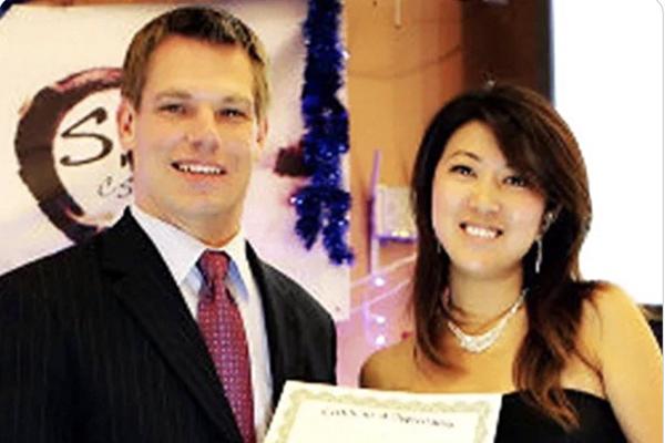 方芳跟加州聯邦眾議員埃里克‧斯沃韋爾(Eric Swalwell)的合影。(Facebook截圖)