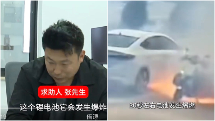 大陸媒體日前報導,2025年11月25日傍晚,安徽懷遠的張先生像往常一樣,騎着電瓶車(電動自行車)帶妻子去接孩子。行駛途中,車底的鋰電池突然爆燃,火焰瞬間吞沒車身,後座的妻子淪為「火人」。