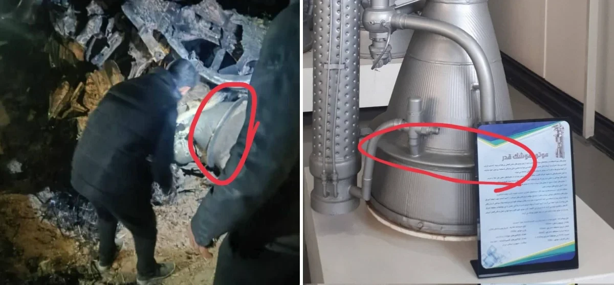 在公開照片中,未見任何與F-16戰鬥機相關的零部件,例如機翼、起落架、駕駛艙碎片或尾翼等。相反地,殘骸主要由疑似飛彈的機身及推進段構成。這些殘骸與液體燃料飛彈的機體結構高度相似,「卡德爾」和「伊瑪德」等系統均採用這類推進方式,而技術故障可能導致飛彈在飛行中或升空後不久墜回地面。