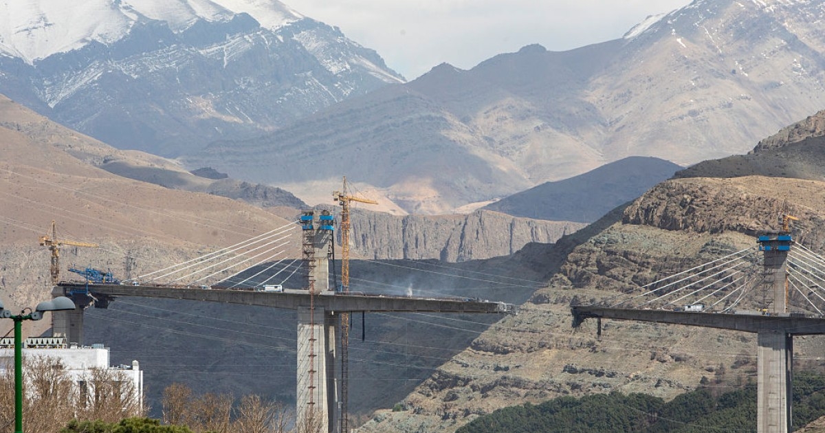 2026年4月3日,位於德黑蘭以西的伊朗卡拉季,B1大橋在空襲中被摧毀,圖為大橋損毀後的景象。(Majid Saeedi/Getty Images)