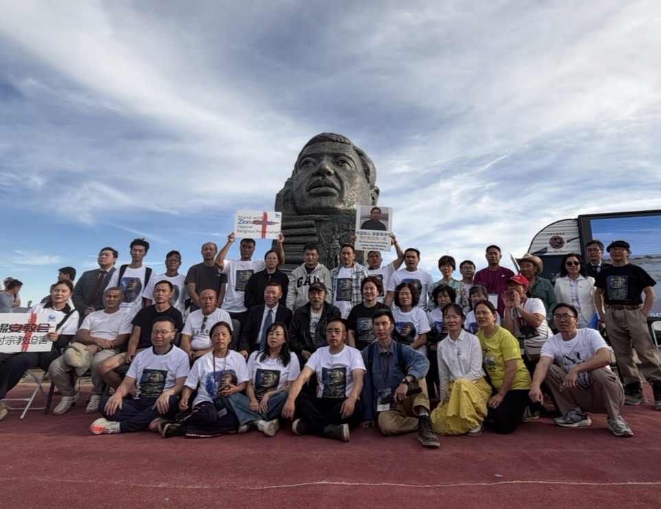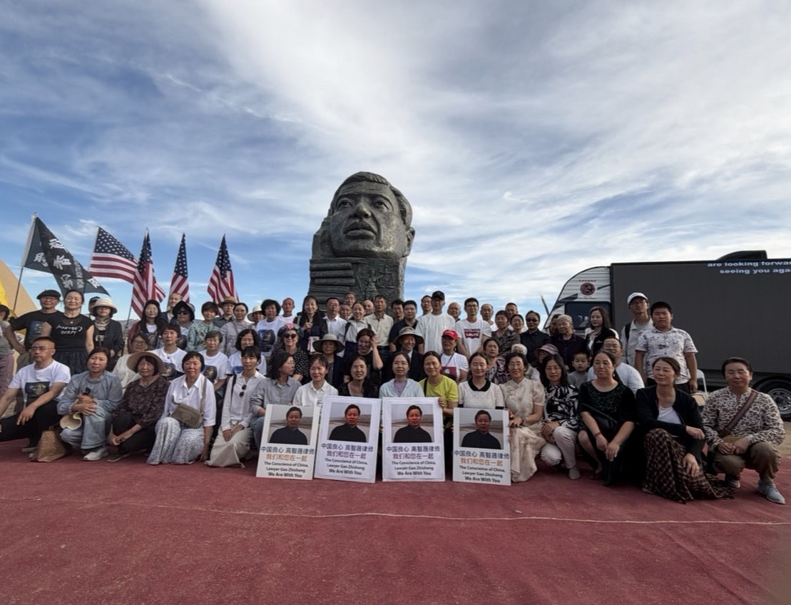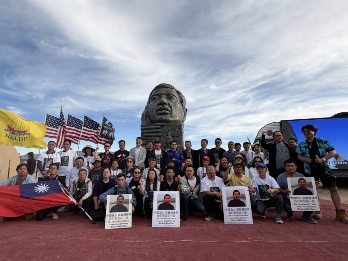 2026年4月4日,二百多位嘉賓雲集南加州自由雕塑公園,出席中國人權律師高智晟塑像揭幕儀式。部分來自三藩市灣區的民運人士與嘉賓們合影。(陳德怡/大紀元)