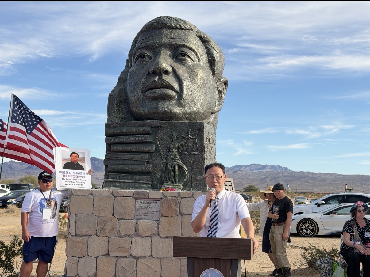 被譽為「中國良心」的著名人權律師高智晟,遭中共強制失蹤八年多,至今生死不明。上周六(4日),南加州自由雕塑公園舉辦高智晟塑像落成典禮,與會者在向他致敬的同時,紛紛表達對其處境的擔憂,並譴責中共的反人類罪行。