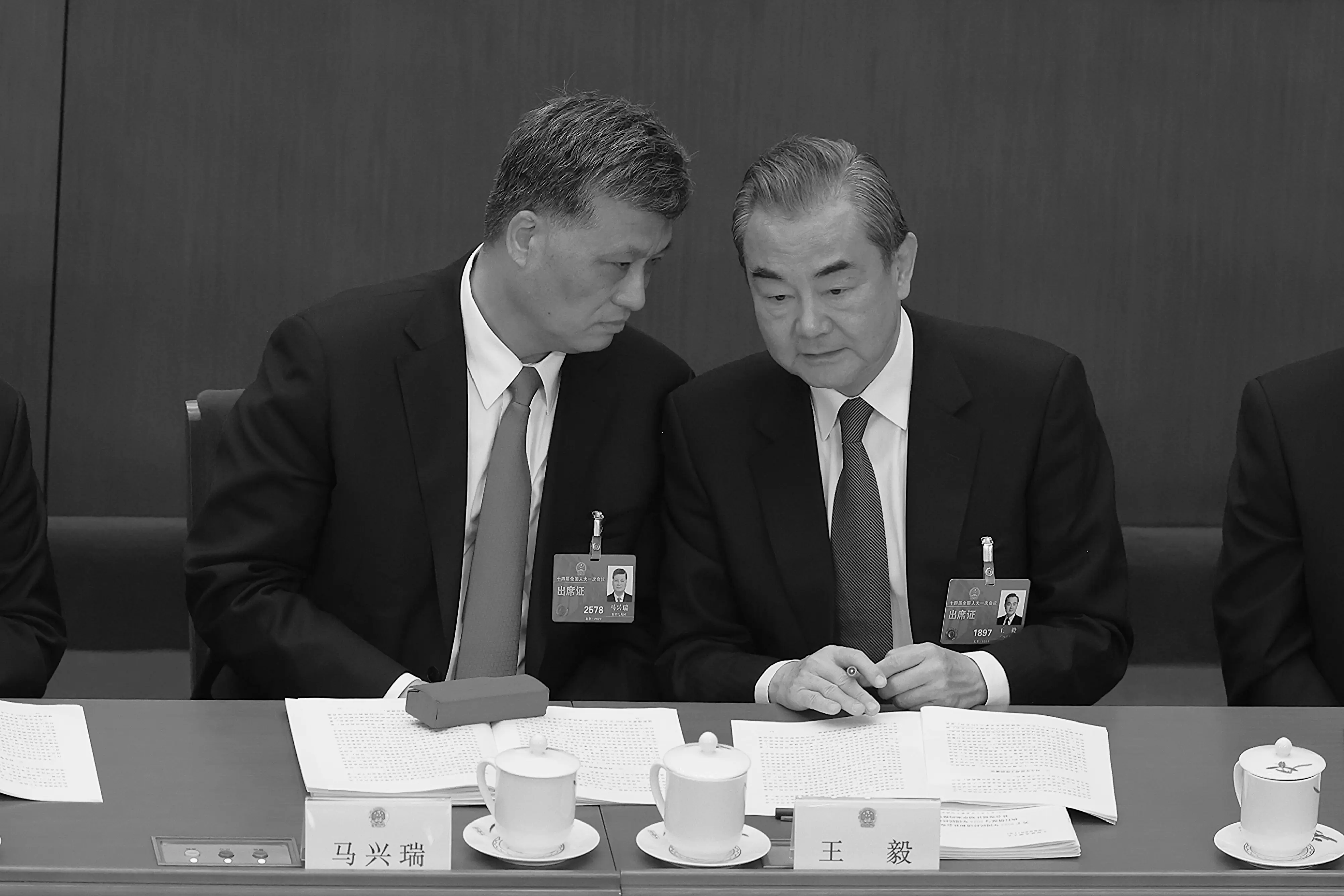 2023年3月5日,中共政治局委員馬興瑞(左)和中共外交部長王毅在兩會會議上