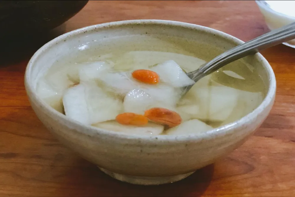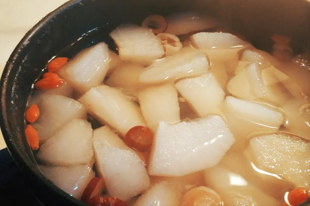 加強版——白蘿蔔梨水:白蘿蔔半根、雪梨一個,都切塊,加水煮30分鐘。梨能潤肺,蘿蔔化痰,一個潤一個清,搭配起來對付乾咳帶痰、嗓子干癢最管用。這個湯甜甜的,小孩子也愛喝。