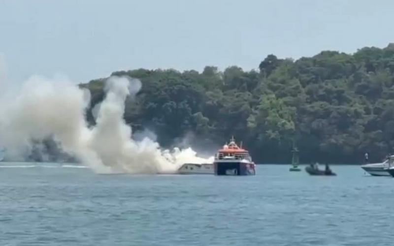 泰國普吉島碼頭一艘快艇爆炸.造成1死5傷。(圖擷自「@Ruamduay」X帳號)