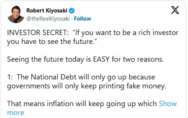 一如既往,羅伯特·清崎表示,任何可以被「印出來」的資產都是不安全的,並且可能導致虧損。