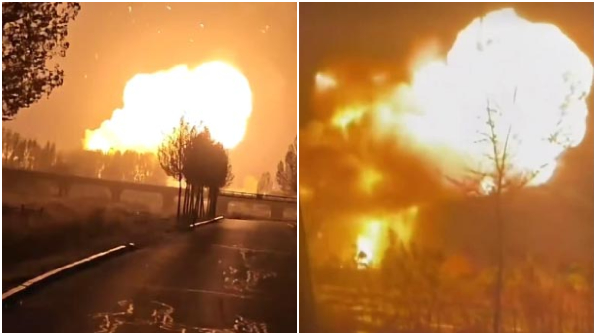 網傳大量視頻顯示,現場接連發生爆炸,蘑菇雲騰空而起,火球將夜空照亮。周邊數公里外的居民能看到,部分居民非常驚恐。