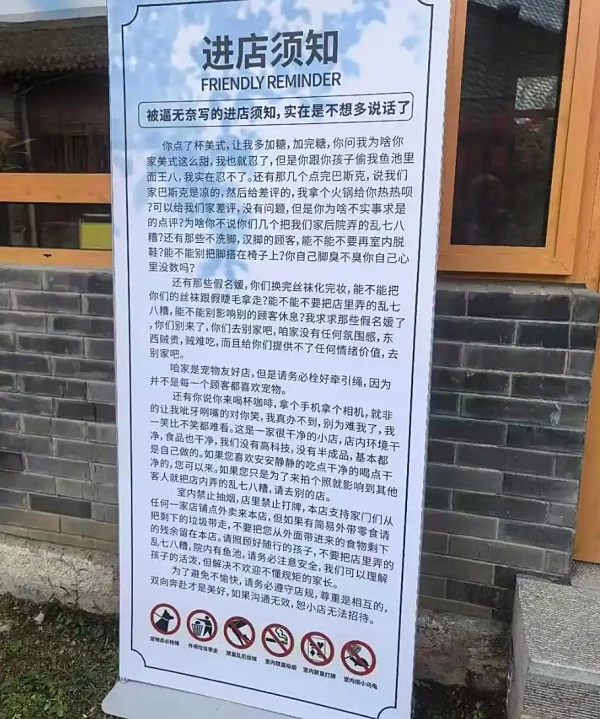 該須知開篇寫道:「進店須知(被逼無奈寫的進店須知,實在是不想多說話了)。」