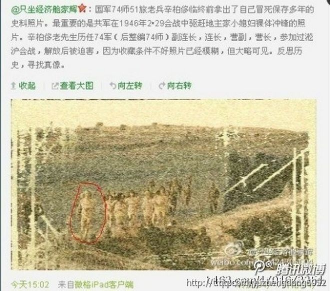 歷史學家辛灝年曾在公開演講中披露,國共內戰時期的孟良崮戰役中,中共軍隊無法攻破裝備精良的國民黨陣地,就在當地大肆抓捕所謂「地主」或「反動」家庭,先將精壯男子殺光,然後逼迫老人、孩子和脫光衣服的婦女走在軍隊的前面,向國民黨陣地發起一波又一波的衝鋒。國民黨軍人不忍心開槍,因此重型武器用不上,只能讓過老弱婦孺,然後與走在後面的中共軍人「拼刺刀」。